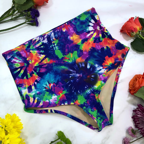 High waist over the navel tie dye print swimsuit bottom.